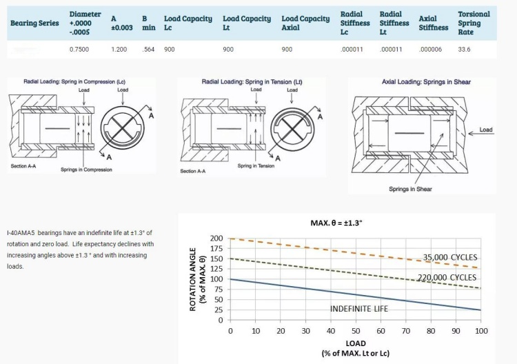 C-Flex 軸承或樞軸是圓柱形有限旋轉(zhuǎn)軸承,具有較高的相對徑向和軸向剛度,可提供低、中或高扭轉(zhuǎn)彈簧剛度。它通常可用于 +/-30 的**偏轉(zhuǎn)角,但可根據(jù)要求提供各種配置。扭轉(zhuǎn)剛度范圍從 0.0003 Lb-In/度到 7.8023 Lb-In/度。它可以簡單地用作振蕩單元或極其敏感的關(guān)鍵元件。