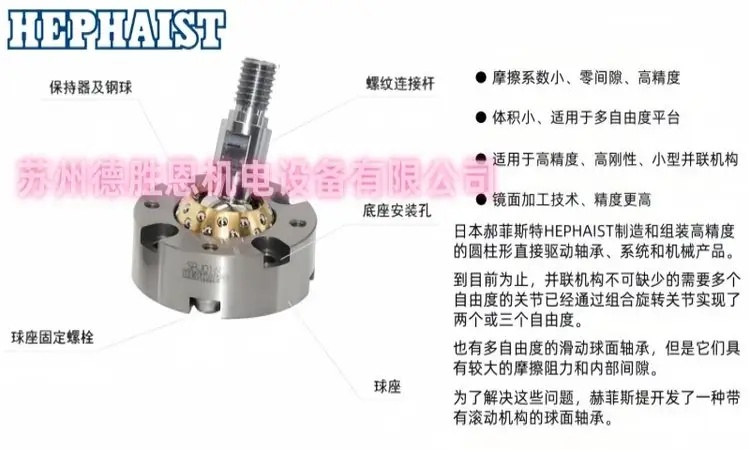 蘇州德勝恩銷售日本HEPHAIST球鉸軸承 HEPHAIST球面滾動接頭軸承 HEPHAIST萬向球進口軸承 HEPHAIST軸承代理商。SRJ006CP 多自由度軸承小型化,零間隙滾動導向所實現的高剛性、高精度。